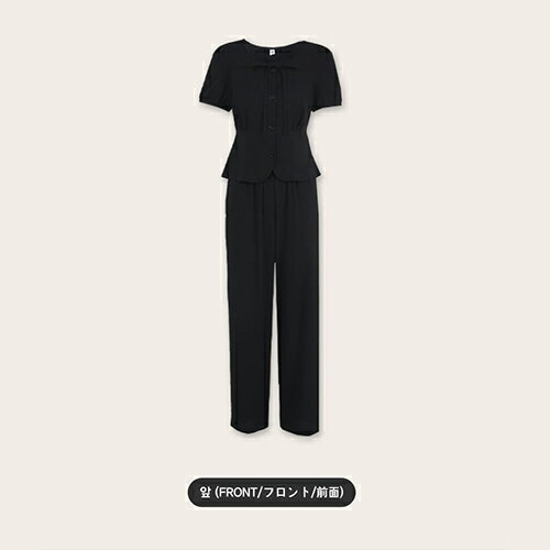 | レディース set 韓国ファッション トップス ボトムス ロングパンツ ストリング ひも リボン 結び ペプラム 裏地 ウエストゴム 両ポケット 薄手 シンプル ガーリー フェミニン 大人 オフィス カジュアル 夏 SSRIRI | ||