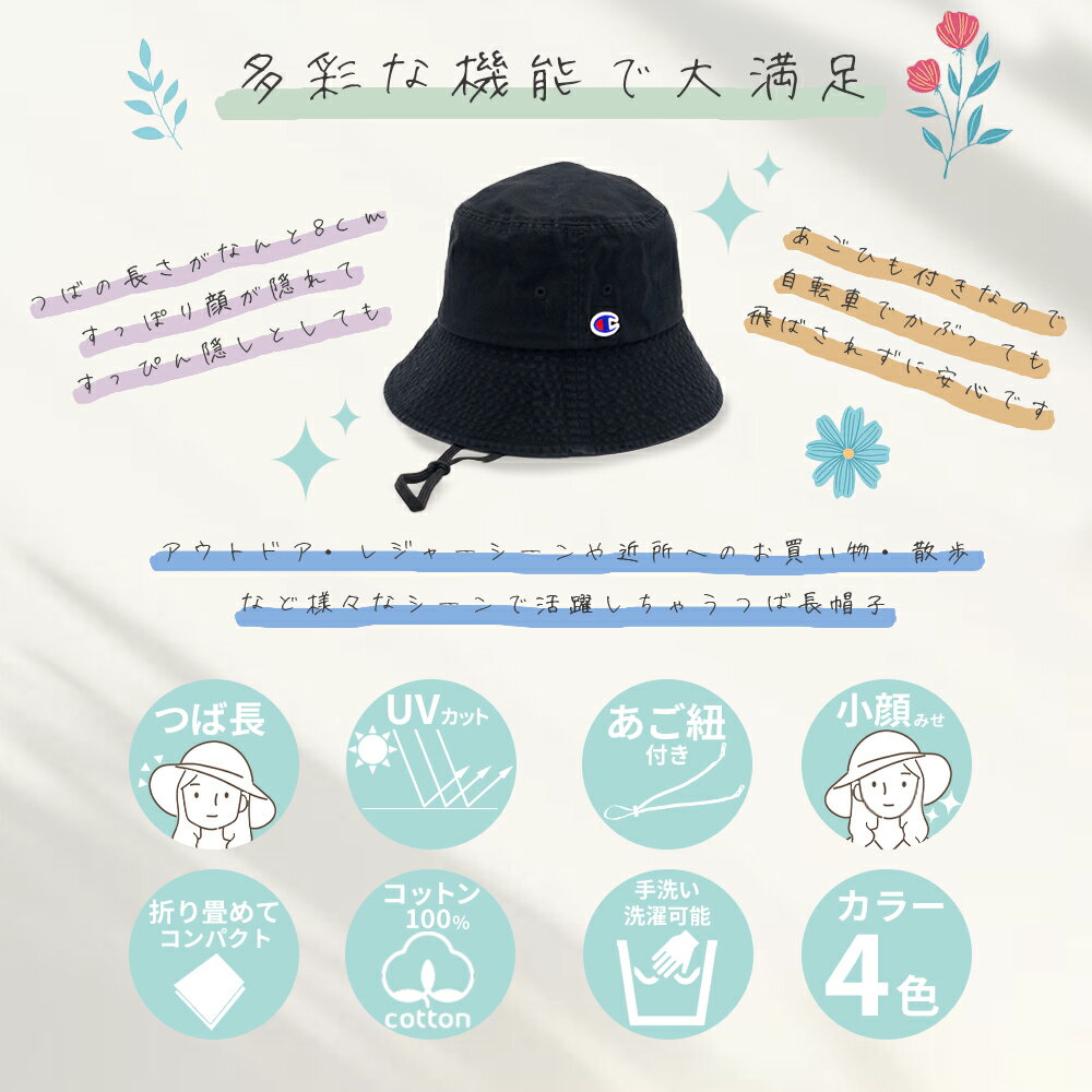 | 【2960円~ 700円オフ 4/21迄】 帽子 レディース チャンピオン 小顔 女優 女優帽 つば長 つば広 紐付き ひも付き アドベンチャーハット バケットハットハット 深め Champion ブランド UVカット 紫外線 日よけ 日除け 日焼け防止 メンズ コード バケハ 花見 母の日 春 夏 | ||