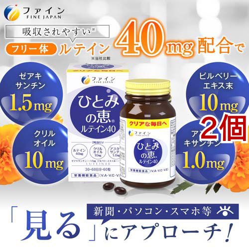 | ひとみの恵 ルテイン40 30日分(450mg*60粒*2コセット)【ファイン】 | ||