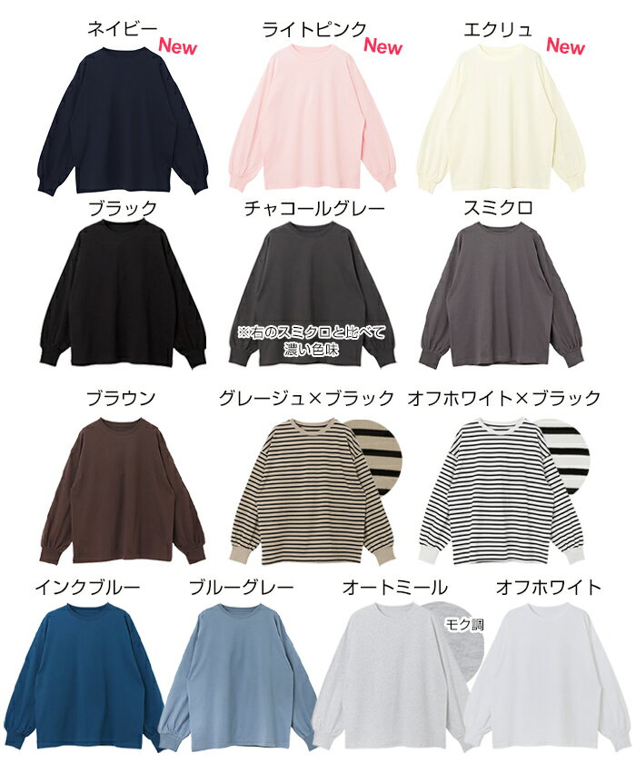| 【メール便C】【一部予約】無地 ボーダー ボリューム袖 コットン 長袖 Tシャツ レディース トップス 長袖トップス 長袖Tシャツ ロンT ロンティー カットソー インナー オーバーサイズ 体型カバー ゆったり シアー シンプル カジュアル M L 春秋 春夏 春 秋 冬 | ||