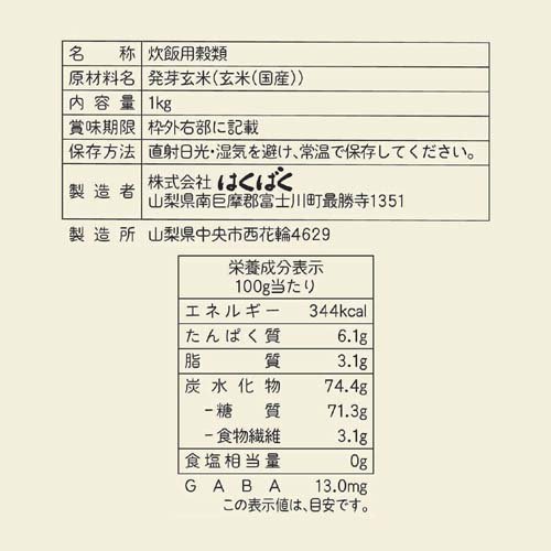はくばく もっちり美味しい発芽玄米(1kg)【はくばく】