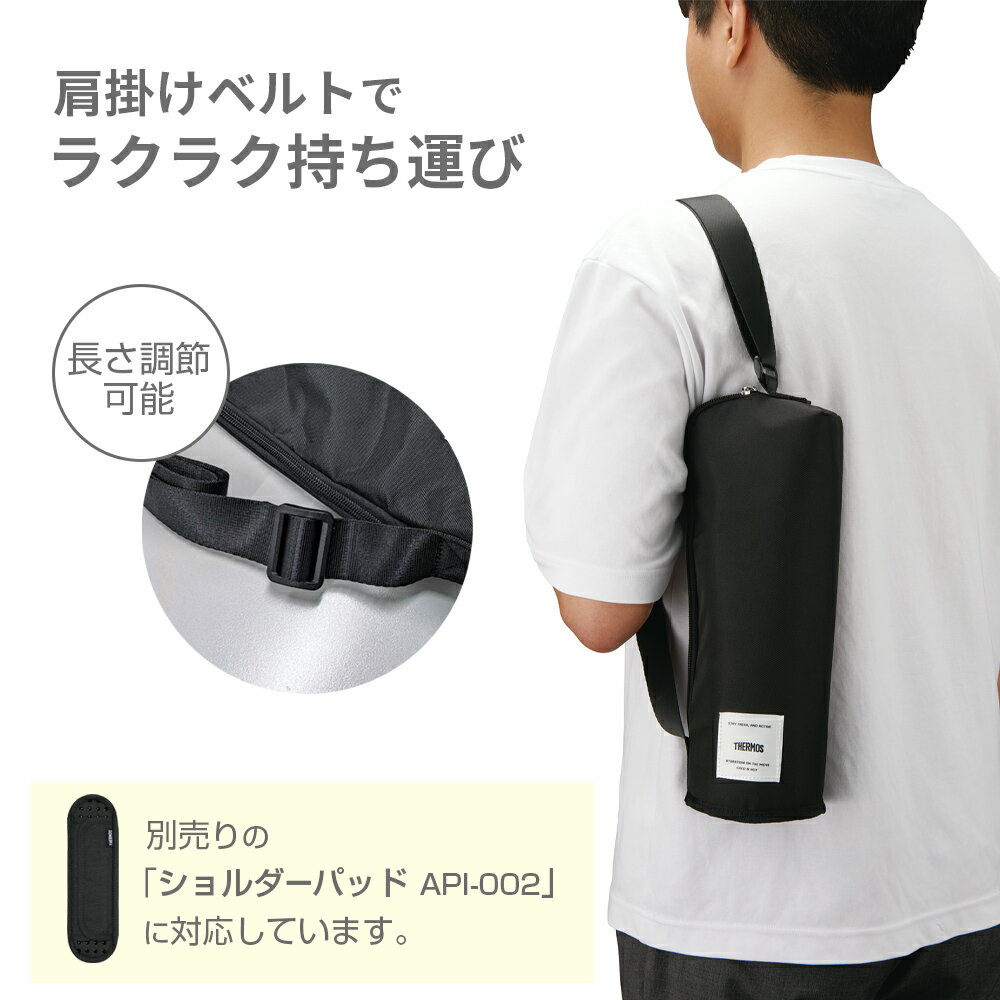 | ★THERMOS 水筒ポーチ 水筒カバー 保冷 ペットボトルカバー ショルダーバッグ 斜め掛け 肩掛け 1000ml 大人 中学生 高校生 シニア 黒 メンズ | ||