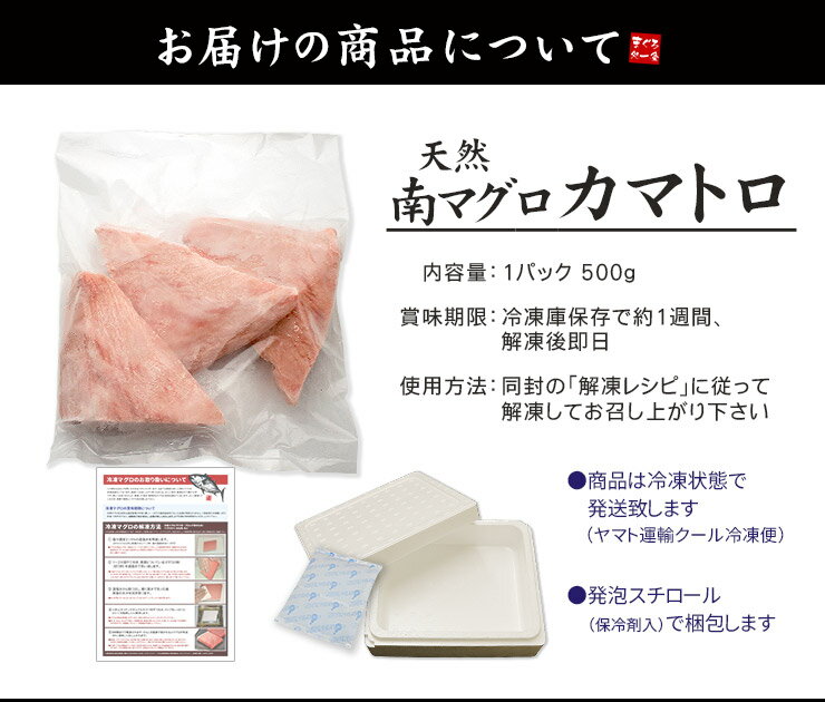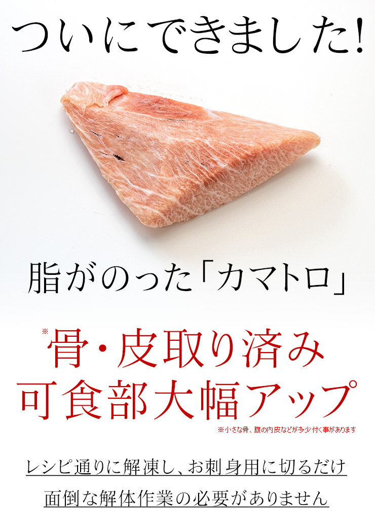 | 天然南マグロカマトロ500g 骨・皮取り済み 送料無料 (寿司 刺身 手巻き寿し 海鮮丼 大トロ 母の日 父の日 お中元 内祝 ギフト)《pbt-bf19》〈sb1〉yd9[[天然南鮪カマトロ500g] | ||