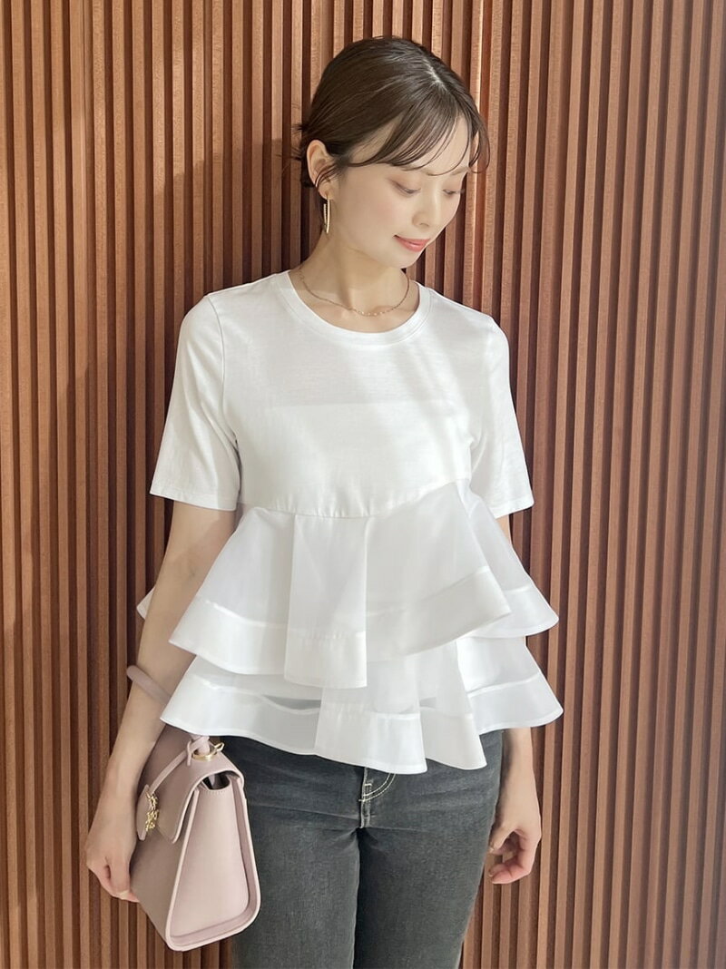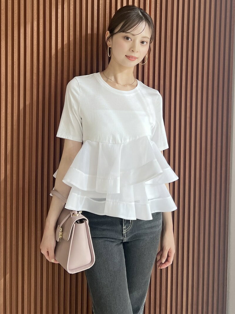 【着心地の良いカットソーノースリプリオーバーにたっぷりチュールフリルが華やか】