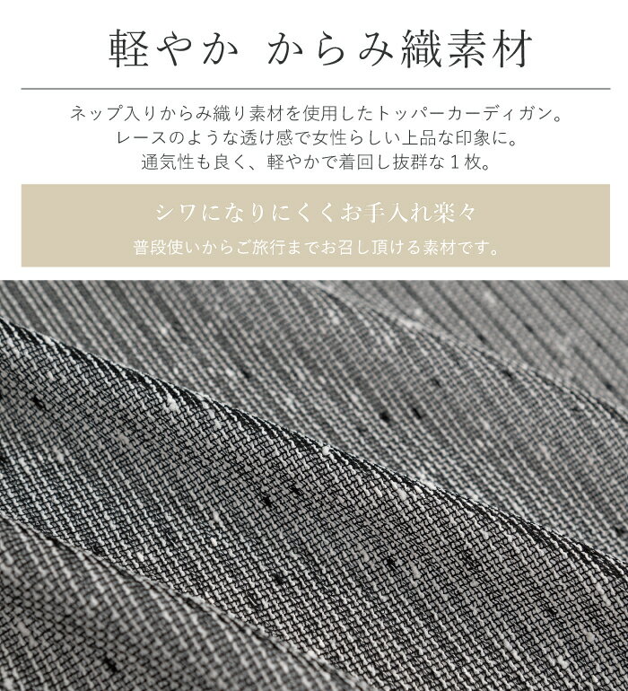 | 【日本製】 からみ織 トッパー カーディガン 母の日 レディース カーディガン ミセス 女性用 婦人服 40代 50代 60代 70代 シニア ファッション お母さん前開き 体型カバー おしゃれ ボレロ プレゼント 敬老の日 羽織り 上着 UV 日よけ UV対策 | ||