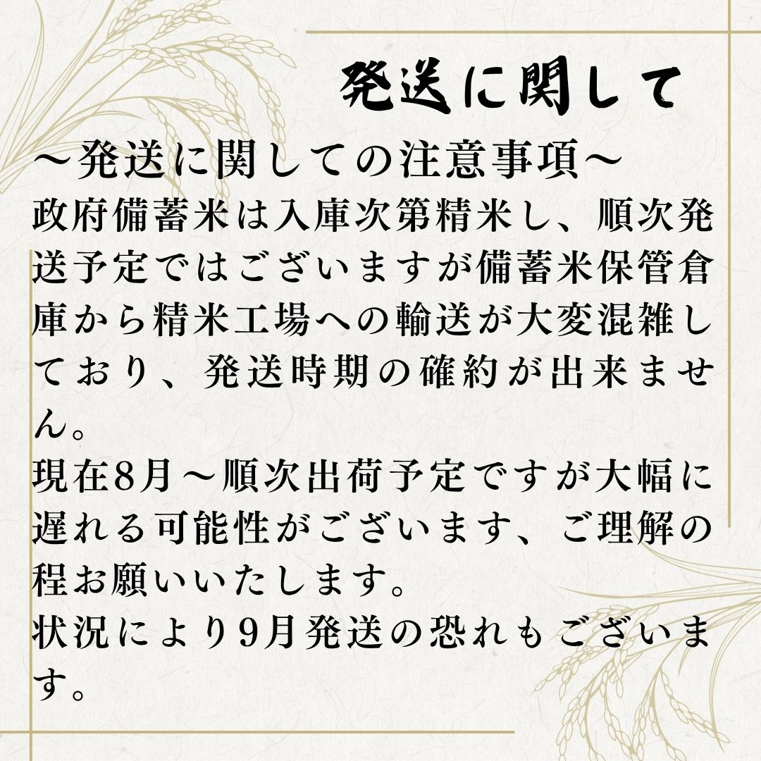 | ★精米工場直送 極味精米にて精米後、8月~順次発送予定。 随意契約備蓄米の為、無くなり次第終了です。 きわみせいまい | ||