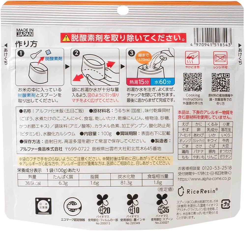 五目×4個 原材料名 五目御飯(米(国産)、醤油、煮物調味液、ごぼう、つきこんにゃく、油揚げ、その他)/調味料(アミノ酸等)、乳化剤、pH調整剤、メタリン酸Na、酸化防止剤(V.C)、漂白剤(次亜硫酸Na)、水酸化Ca、凝固剤、(一部に小麦・鯖・大豆を含む)