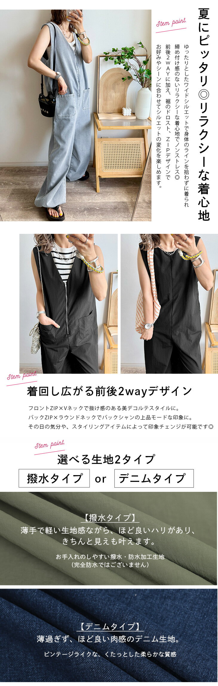 | 【半額クーポン対象】コラボ 前後2way サロペット Cサイズ 撥水 デニム 2タイプ ハーフジップ ドロスト ワイドパンツ Vネック ラクチン 夏コーデ レディース おしゃれ 2025春夏新作 【asrss25-1449】【予約販売:8月21日入荷予定順次発送】【送料無料】メ込2 | ||