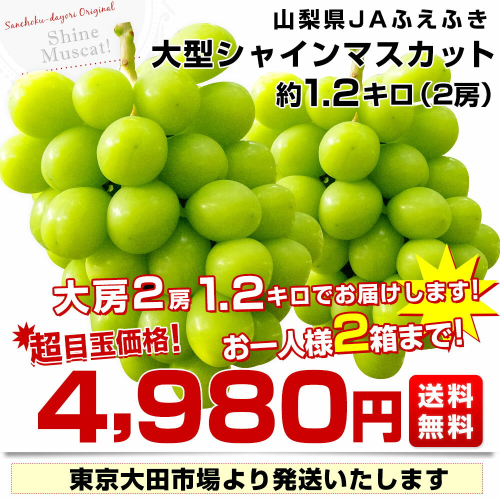 | 【ダイヤモンド・プラチナ会員限定クーポン配布中】山梨県産 JAふえふき 大型シャインマスカット 約1.2キロ(2房)送料無料 ぶどう ブドウ 種なしぶどう ギフト 贈り物 クール便発送 | ||