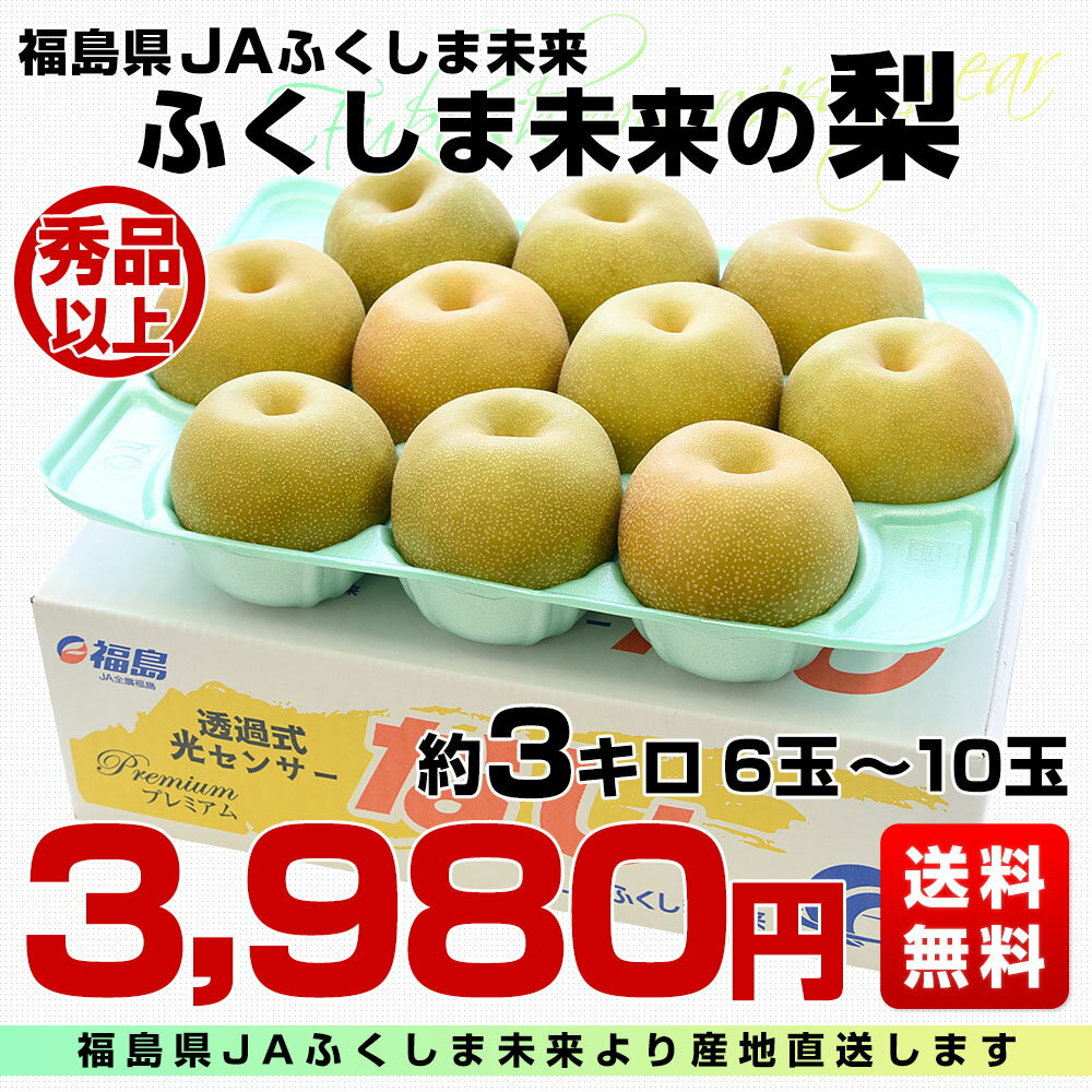 | 福島県より産地直送 JAふくしま未来の梨 (幸水梨、豊水梨、あきづき)約3キロ(6玉から10玉) 送料無料 なし 梨 ナシ 敬老の日 | ||