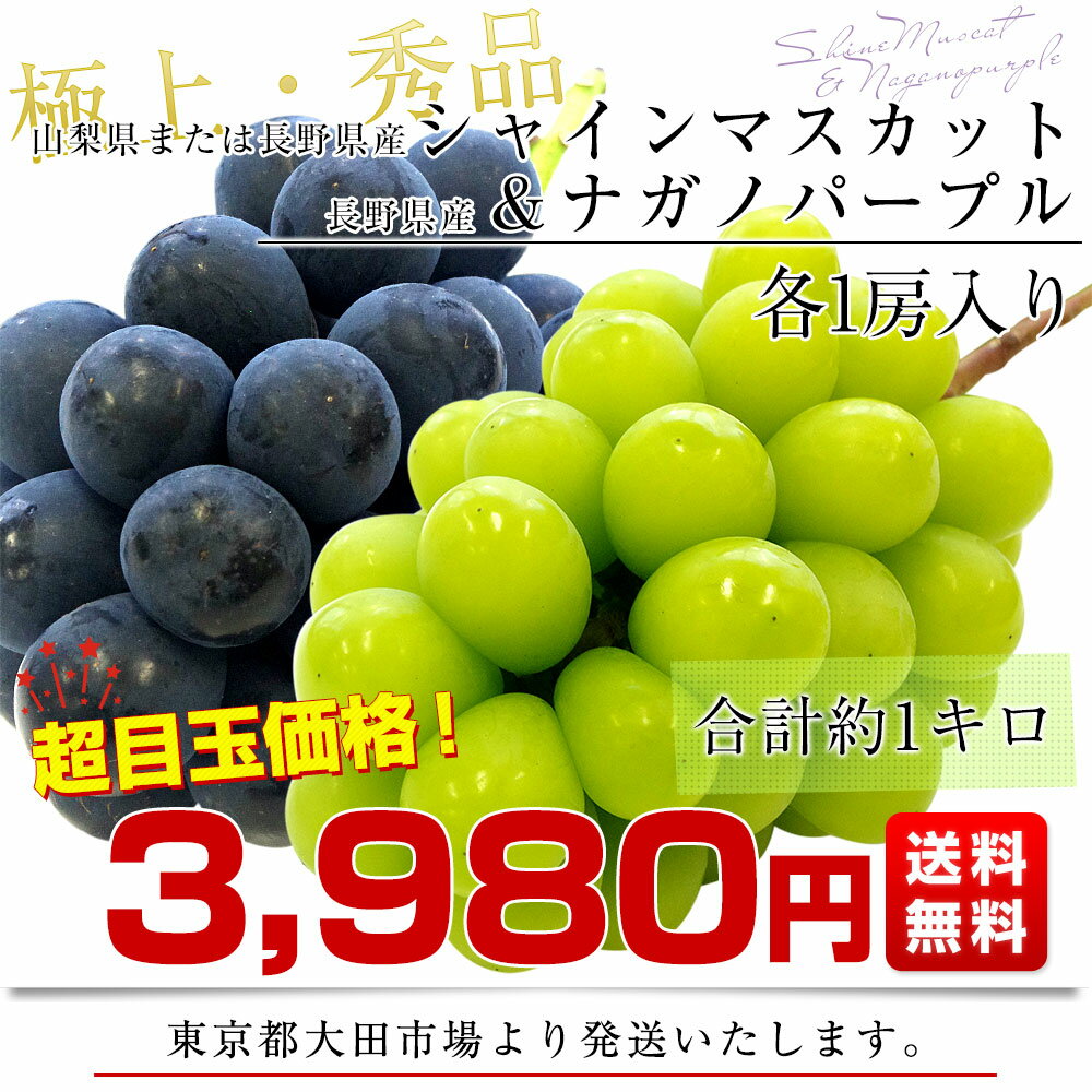 | 山梨・長野県産 シャインマスカット& ナガノパープル 各1房 合計約1キロ 送料無料 ぶどう 葡萄 ぶどうセット | ||