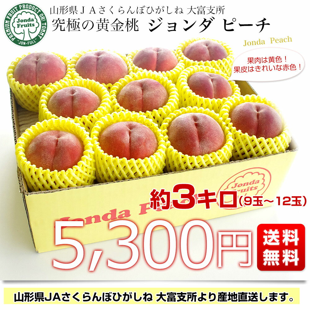 | 山形県より産地直送 JAさくらんぼひがしね 大富支所 究極の黄金桃 ジョンダピーチ 約3キロ (9玉から12玉) 送料無料 桃 モモ もも | ||
