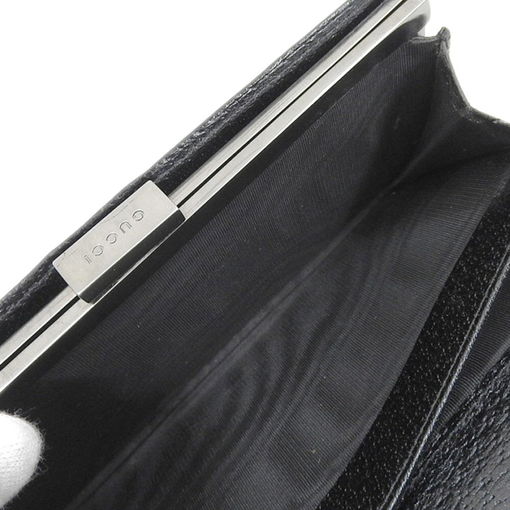 | 【本物保証】 箱付 グッチ GUCCI オールドグッチ がま口付長財布 レザー ブラック 035 0416 2092 希少 レア 【中古】 | ||