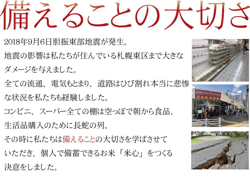 | 新米【送料無料】【送料無料 備蓄米】米心 10kg 北海道産 ゆめぴりか令和7年産 5年保存無洗米 新米 個人用備蓄米 約1カ月の備蓄 | ||