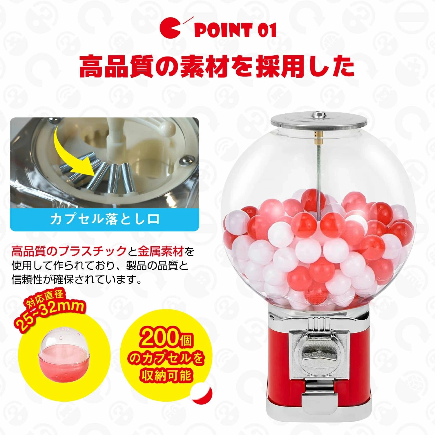| 【楽天1位】ガチャガチャ コンプリート カプセル ガチャマシン 景品 ポーチ 空カプセル おもちゃ 260x260x460mm 赤 白 レトロ 100円硬貨用 業務用 ガチャマシーン ドーム型 カプセルマシン ガムボールマシン スーパーボール | ||
